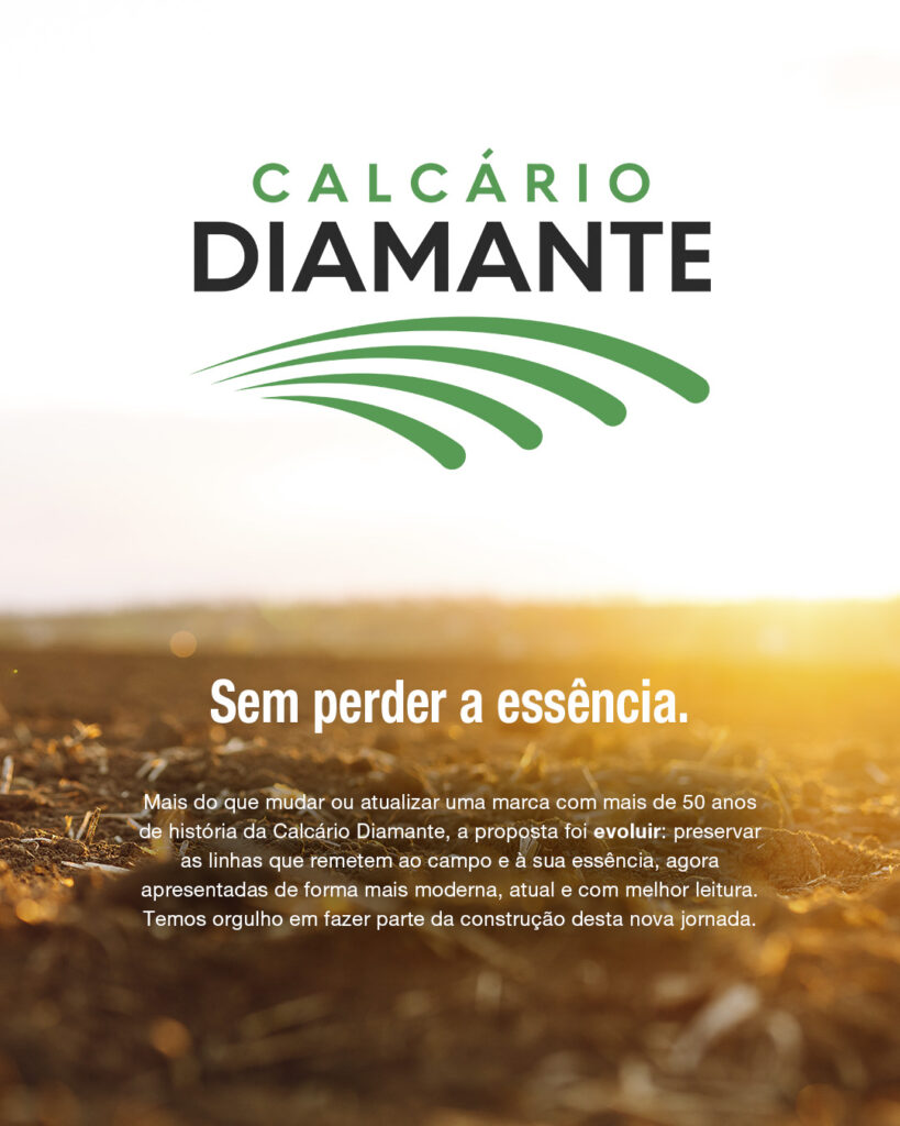 Marcas com mais de 50 anos de história não mudam por modismo. Elas evoluem. O novo logotipo da Calcário Diamante nasce de um processo de atualização e reestruturação natural de uma empresa sólida, atenta às novas demandas do mercado. Mais do que mudar, a proposta foi evoluir: preservar as linhas que remetem ao campo e à sua essência, agora apresentadas de forma mais moderna, atual e com melhor leitura em todos os pontos de contato da marca.